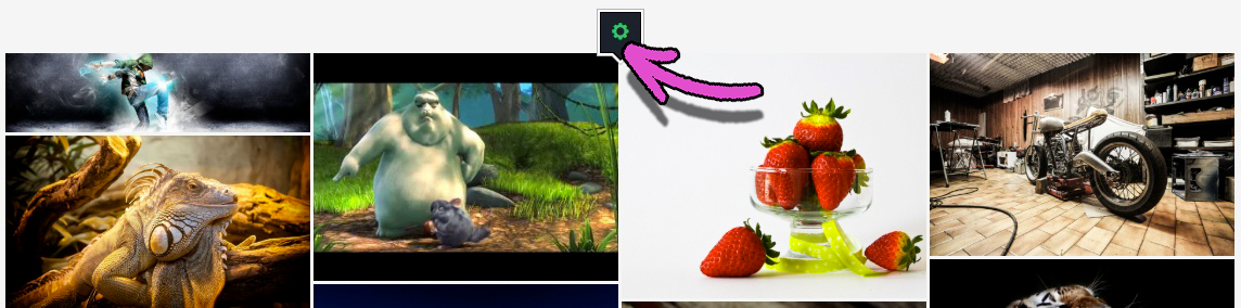 Nejdříve najedete na fotogalerii myší a objeví se ikonka ozubeného kolečka. Kliknete na ni.