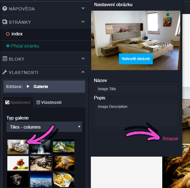 Pokud chcete obrázek odstranit, tak na něj v přehledu kliknete a ze zobrazené nabídky zvolíte Smazat.