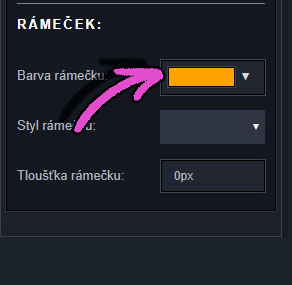 Jako první zvolte barvu rámečku. Můžete volit z přednastavených barev, z palety barev nebo zadat kód barvy.