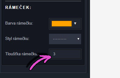 Aby se rámeček zobrazoval, tak zbývá navolit poslední vlastnost – tloušťku rámečku. Udává se v pixelech. Na následujícím obrázku jsou zvoleny tři pixely.